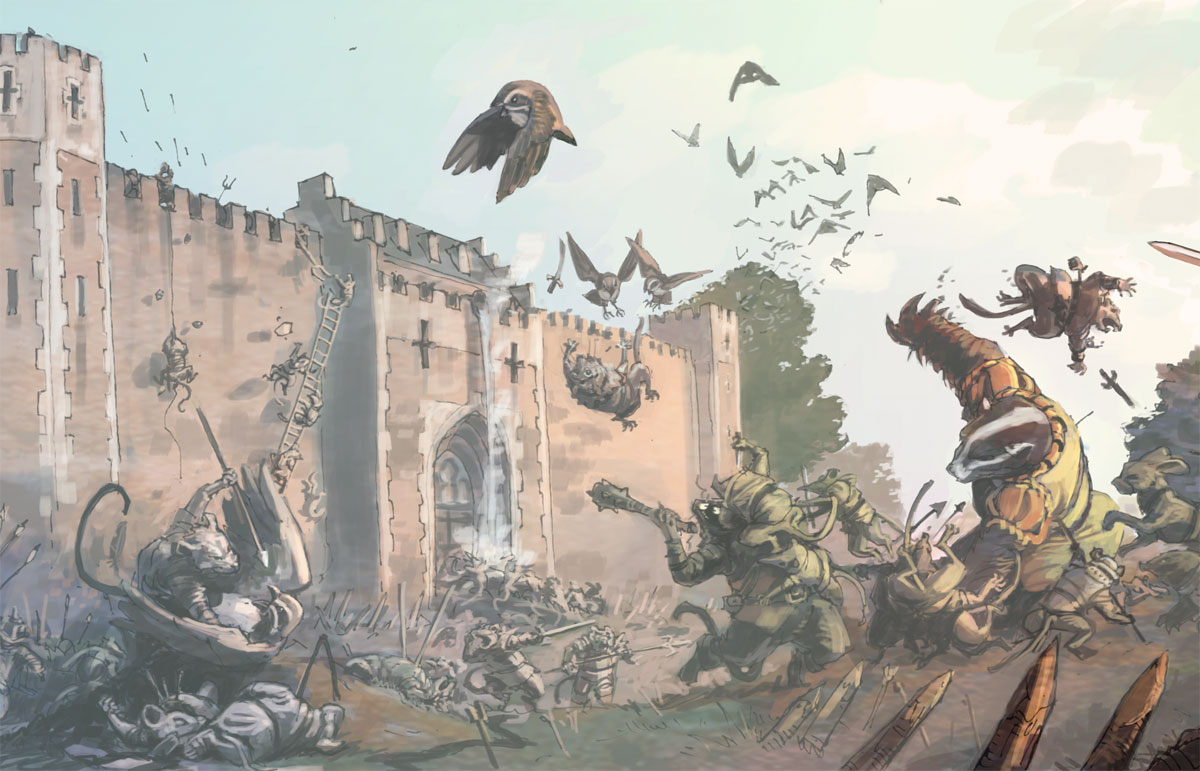 The heroes defend their Abbey from the evil Rat Horde, in Brian Jaque's epic tale.
