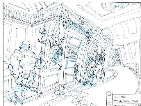 This design underwent many changes before making it's way into the bumpers for Kids' WB! Here it is complete with the candelabra dripping with... red wax, of course!