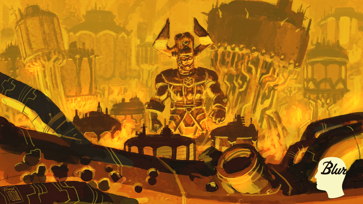 Here's a 1-hour speedpaint of Marvel's Galactus in the act of consuming the living energies of a hapless plant I've dubbed SquidWorld. For Activision's Marvel Ultimate Alliance.