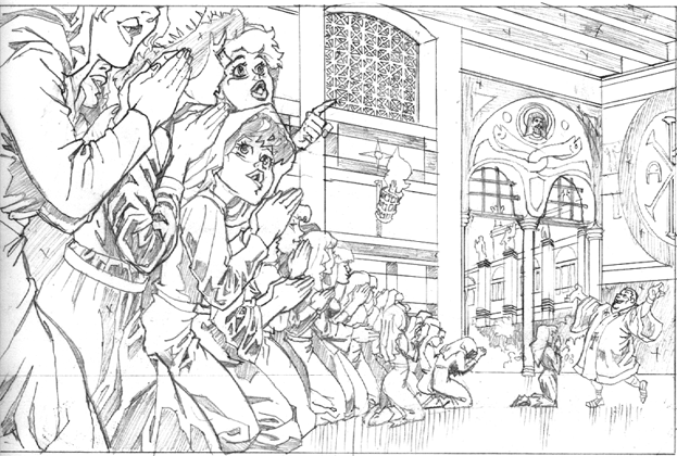 Ursula and her retinue of 11,000 virgins, on their jolly way to maryrdom, arrive at Rome,where they meet the Pope. From