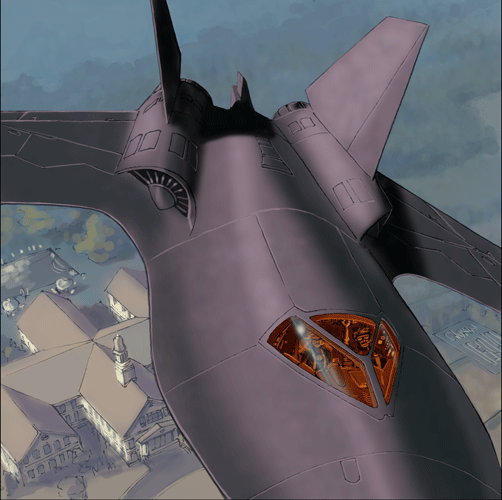 Blasting off on another mission, the X-Men roar off in the latest model of their awesome Blackbird stealth jet. Vroom! That's Cyclops and Jean Grey in the cockpit, just visible behind the ruby-quartz canopy...