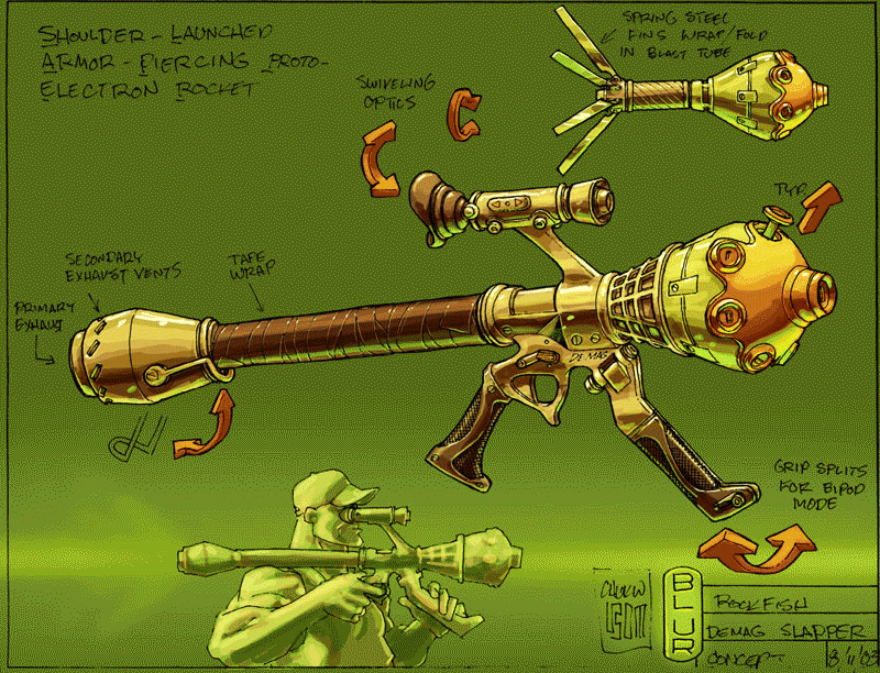 Shoulder Launched Armor-Piercing Proto-Electron Rocket- man, I love acronyms! Hero Cyrus defends himself in blur's award-winning short film